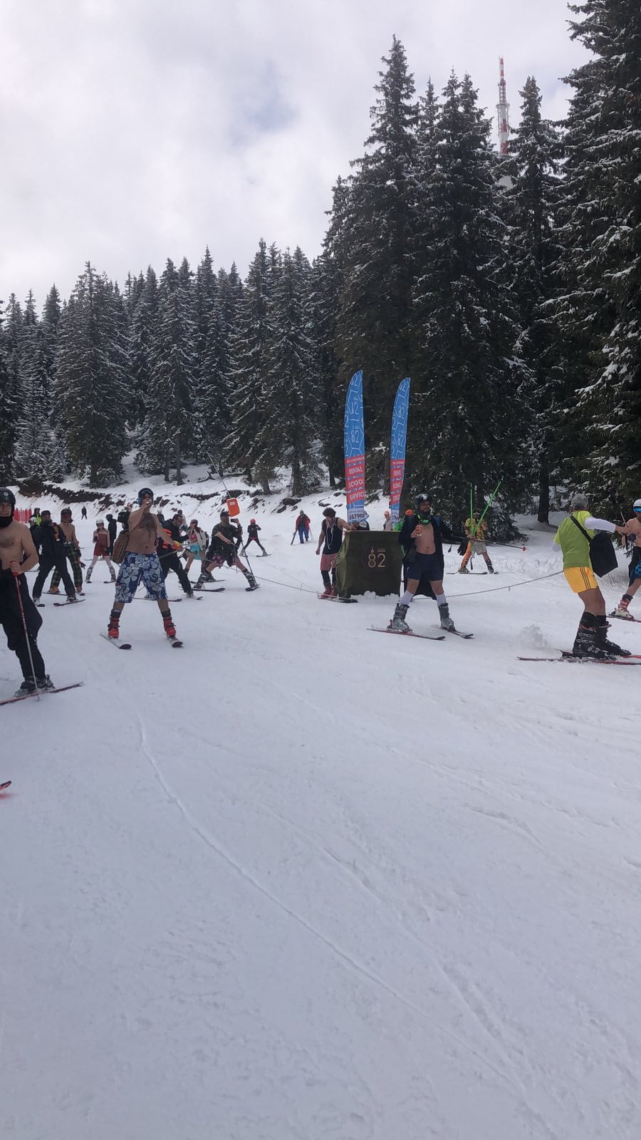 Мобилният музикален бар беше емблемата на парада и предвождаше цялото спускане по писта Nо 6 (туристическата). На различни места спираше доста често за специални животворящи и освежителни напитки, които даваха топлина и ноти на всички голи скиори и бордисти, а феновете отстрани се радваха и снимаха „малкото, но достатъчно качествени ентусиасти“.