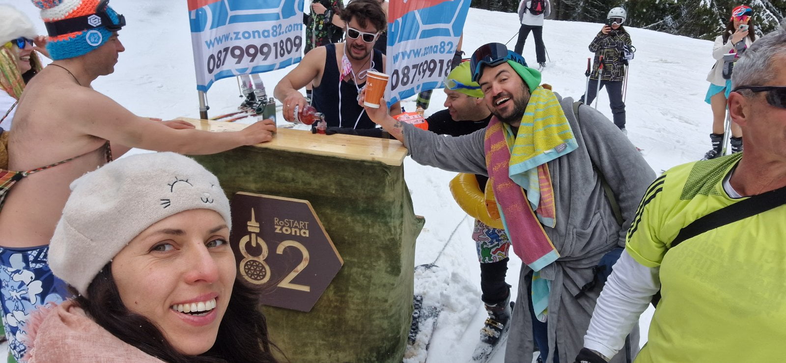 При минусови температури и снеговалеж лошото време не попречи на ентусиастите да облекат атрактивни бански костюми, да сложат плажни атрибути заедно със ските и бордове. Както някой се пошегува за този зимен сезон: „Времето на Великден е такова, като на Коледа, а на Коледа беше, все едно е Великден“.