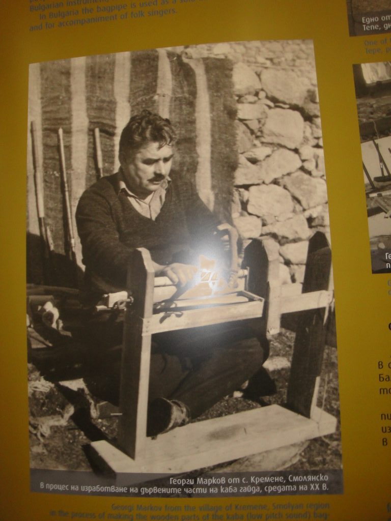 Посетителите на изложбата може да видят кадри с паметните гайдари Стефан Захманов, Лазар Каневски, Апостол Кисьов, Михаил Калфов, Дафо Трендафилов, Георги Марков, който през 1951 година е заснет в процес на изработка на дървените части на гайдата с един примитивен ръчен струг.