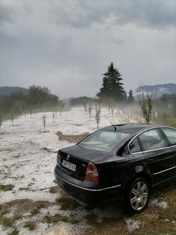 „Градушката заваля към 13 часа днес, с много силен вятър. Продължи около един час. По пътя колите не можеха да минават. Зърната не бяха много едри. Най-големите бяха максимум до 2-3 сантиметра, като едри лешници. Пораженията станаха обаче заради вятъра. Фасул, картофи, домати – всичко е унищожено. Чак ливадите не стават за косене. Малините бяха назряли, не смогвахме да ги оберем. Една не остана. Овошки бяха отрупани с плод. Сега и листа не са им останали даже. Само колчета останаха от овошките и набития фасул. Малкото плод по дърветата, който тук-таме е оцелял, е очукан и ще изкапе“, казва Румен Пашалийски.