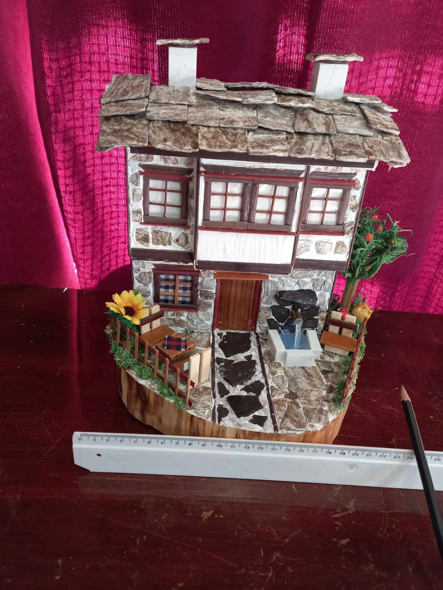 Макет на китно родопско селце със седем къщи изработи икономист от село Баните. Основният материал, който използва майсторката Бойка Козарева, е камък и дърво.