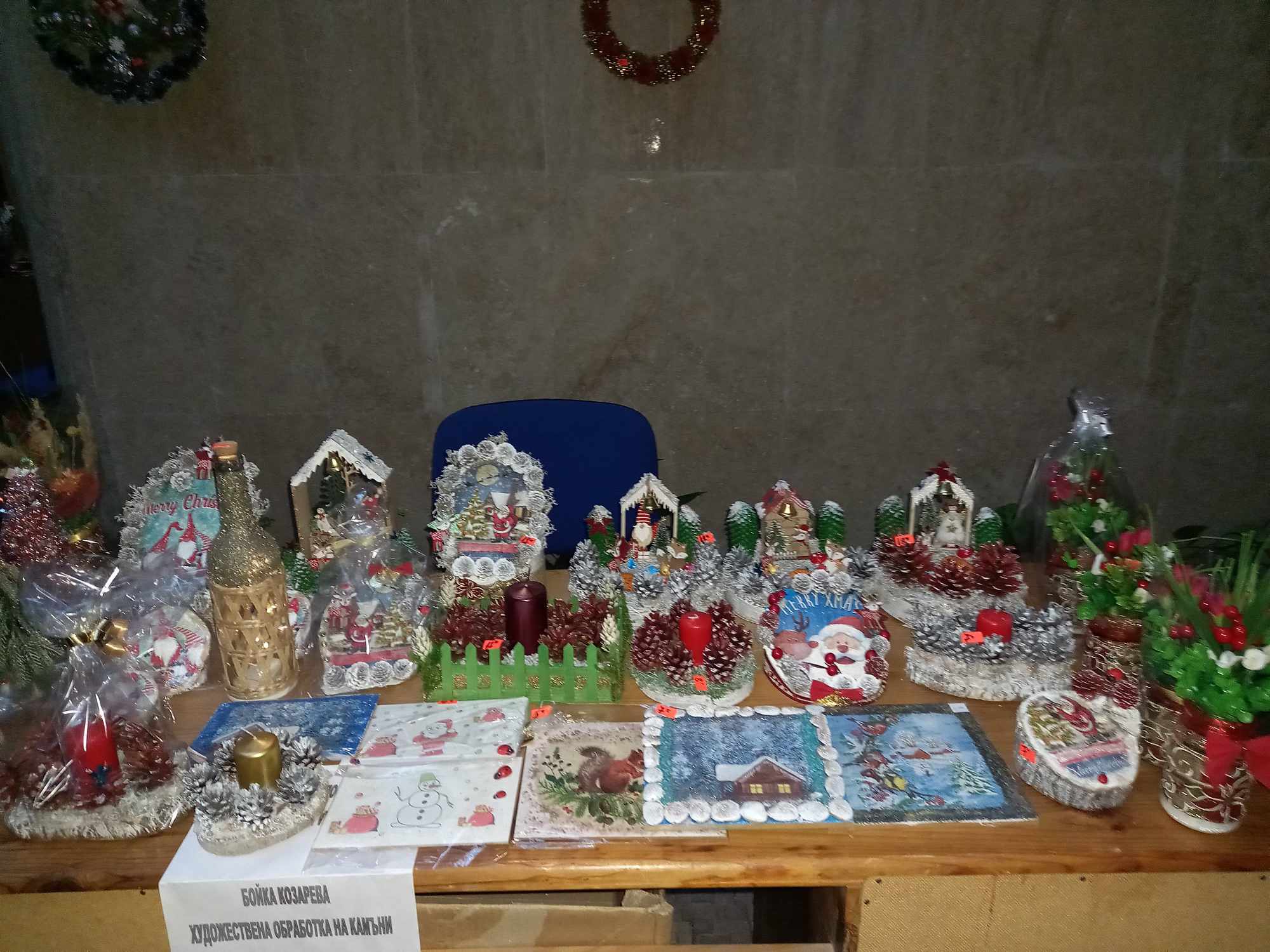„Работя усилено. Няма спиране. И на 31-ви декември, и на 1-ви януари бях в ателието. Отдала съм се на това хоби с цялото си сърце. Не смогвам да си свърша къщната работа. Живея на втория етаж, но съм почти непрекъснато в ателието. То е пълно с материали. Имам две бюра- На едното чукам камъни, на другото майсторя разни неща. Наскоро един човек си взе от мен десет къщи. И той иска явно да си направи село“, смее се Бойка.