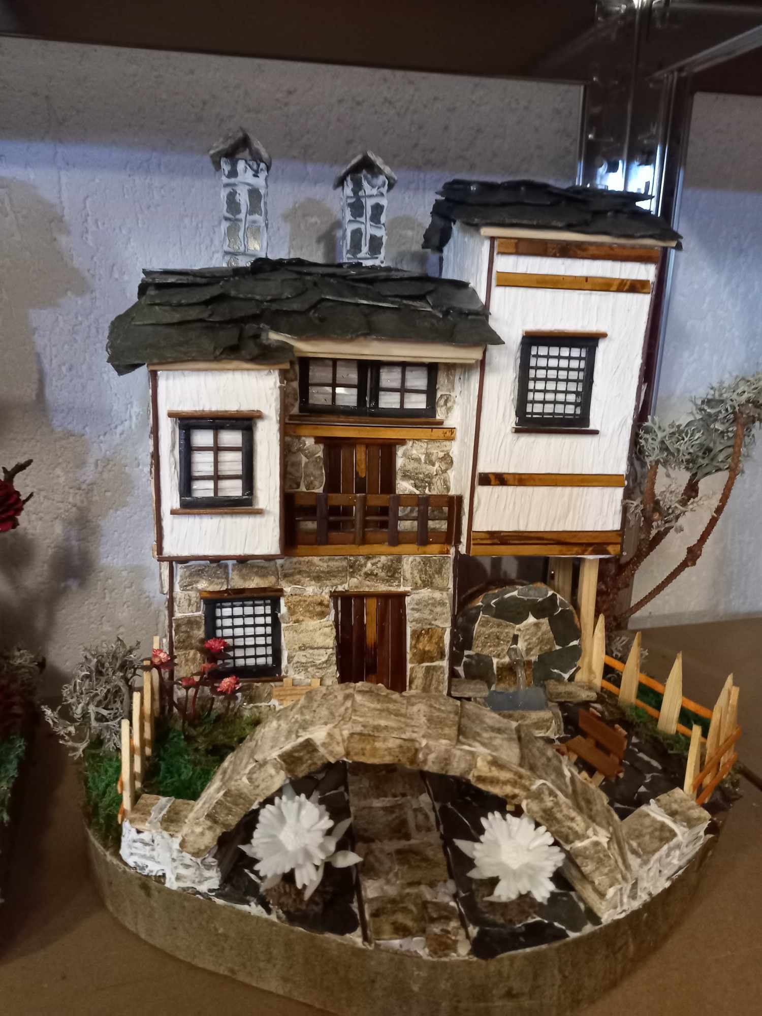 Основата на къщите е стиропор, от който тя издълбава форми за прозорци и врати. Отделно майстори от дърво дограмите и ги намества в отворите. Отвътре им слага пердета, а отвън капаци – точно каквито са си истинските възрожденски родопски къщи.