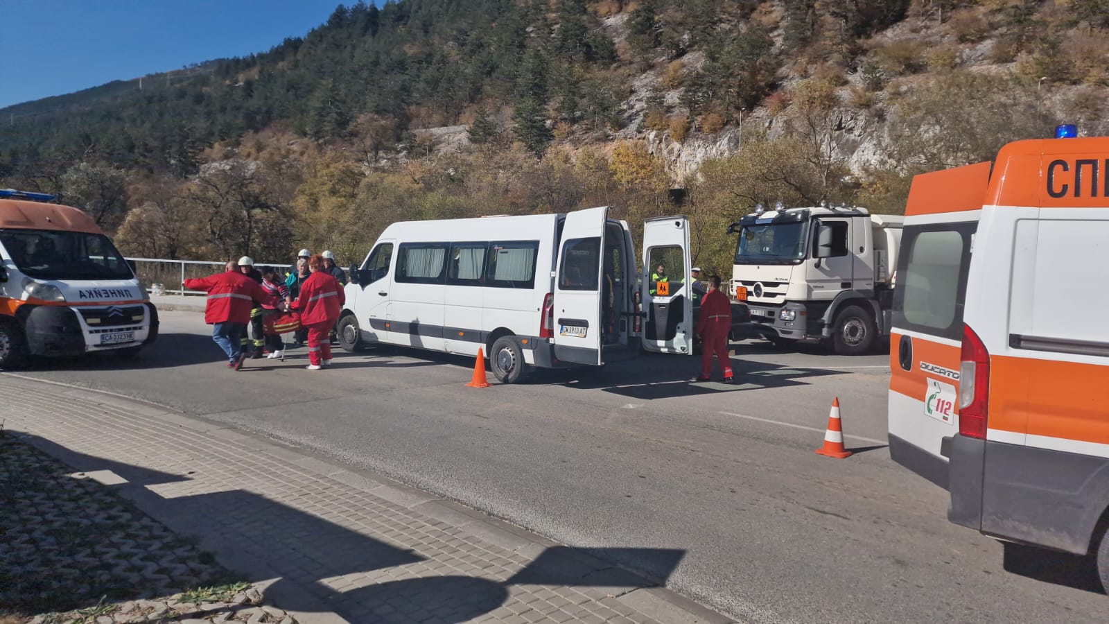 Пристигналите първи на местопроизшествието сили установиха, че е настъпил пътен инцидент между автобус и лек автомобил, вследствие на което има няколко пострадали. Ситуацията се усложни допълнително от второ произшествие на същото място – внезапно спиране на камион, поради настъпилото по-рано тежко ПТП и разлив на опасно химическо вещество, което създава опасност за движението.
