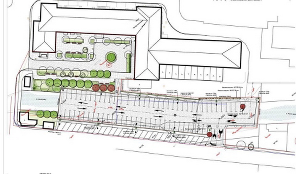 От паркинга ще може да се осъществява връзка и с двора на болницата, който ще бъде ползван от автомобилите на спешната помощ или като авариен изход. Тротоарът от страната на болницата ще преминава в рампа за директен достъп до двора на здравното заведение, като ще се обособят две зони, даващи възможност за сядане, разходка и отдих на пациентите и посетителите в зелена и природосъобразна среда.