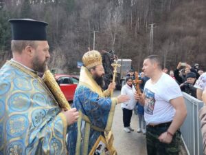 След това с литийно шествие всички се отправиха към моста на река Черна при АРЗ, където владиката Висарион хвърли кръста. В студените води нагазиха 8 смелчаци, а Разпятието извади от реката 33-годишният военнослужещ Петър Савов, който пожела здраве, успехи и щастие на всички. Той посочи, че над 10 пъти е участвал в ритуала по изваждането на Богоявленския кръст.
