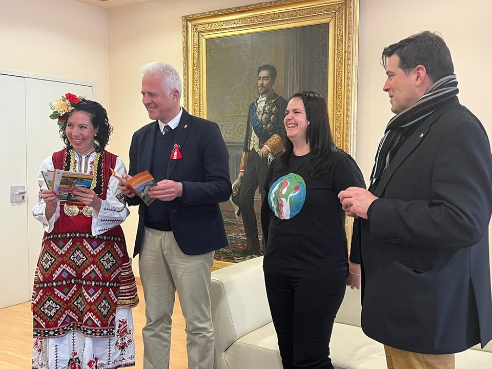 „Посетихме кмета на Логроньо – Пабло Ермосо по случай националния празник на България – Трети март. Почерпихме го с хляб и сол по стара българска традиция, поднесен от нашето красиво момиче, облечено в традиционна българска носия. Използвахме възможността да го закичим с мартеница и да му разкажем малко повече за празника ни, за нашите обичаи и традиции“, съобщи Роси Младенова във фейсбук профила си.