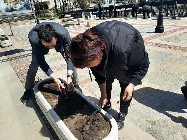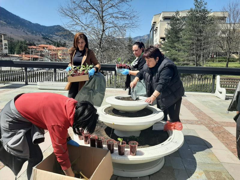 Зaм.-ĸмeтовете инж. Mapиaнa Цeĸoвa и Марин Захариев чистиха и засаждаха цветя на зелените площи в амфитeaтъpa на новия център. В рамките на два часа, петима служители от общинска дирекция събраха 15 чувала с отпадъци само от паркинга на ул. „Капитан Петко Войвода“. Те отправиха специални благодарности към нашата съгражданка Анелия, която се е присъединила към тях.