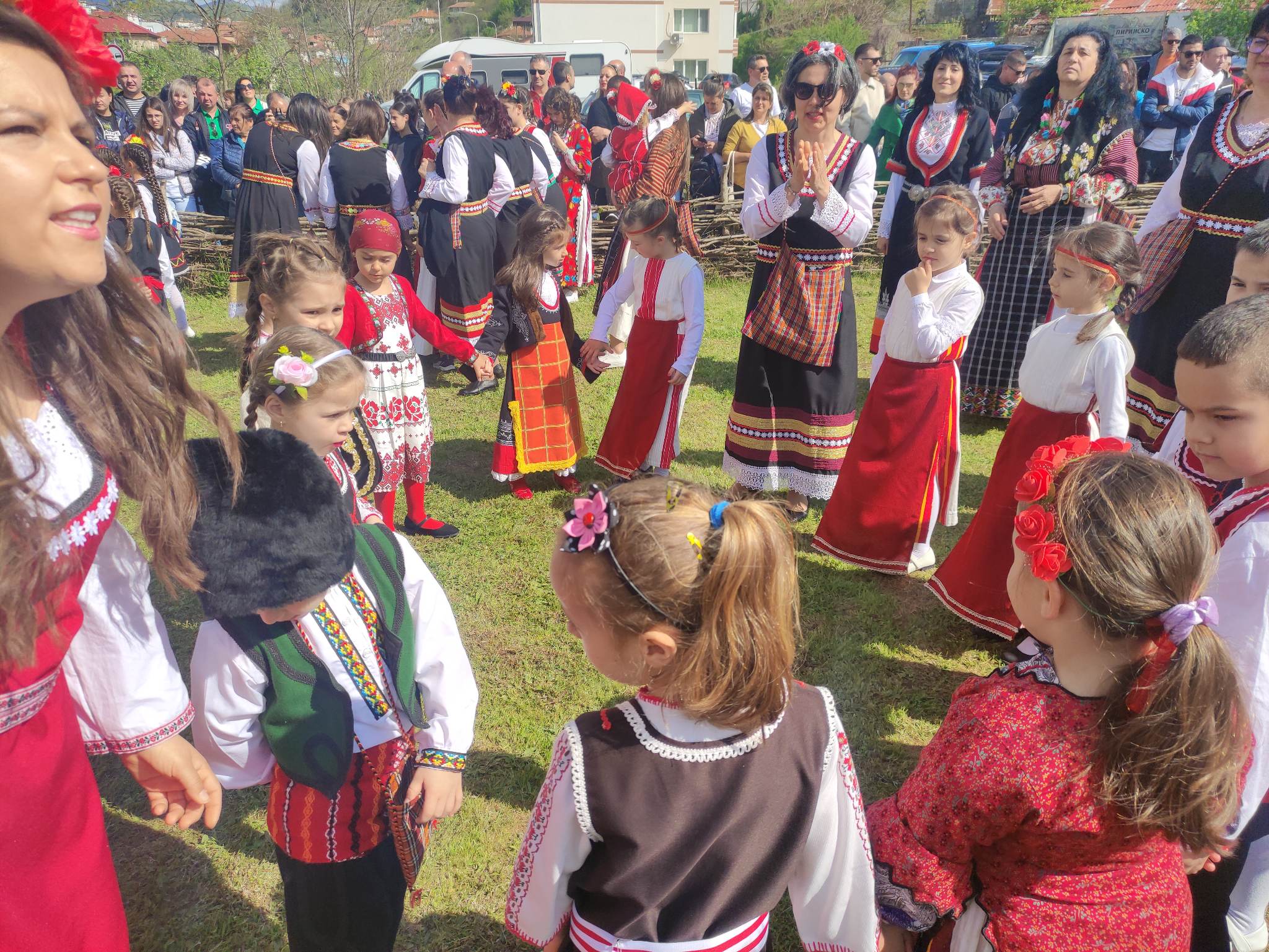 И най-популярното – агнешко на фурна със зелен лучец и джоджен. Правят се люлки за децата, жените пеят песни, играят се хора. Най-традиционното в нашия регион е, че се мием сутринта на Гергьовден с вода. Тя през нощта стои под звездите и в нея са потопени здравец, листа от орех, клонче от дюля, цъфнало цвете. Хората смятат, че тази вода придобива магическа сила за храброст, сила и здраве. Закичваме се с повой за здраве през цялата година“, разказа Радка Терекиева от местното читалище.
